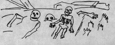 showed him the pile of bodies by the door, and the bones in the still smouldering