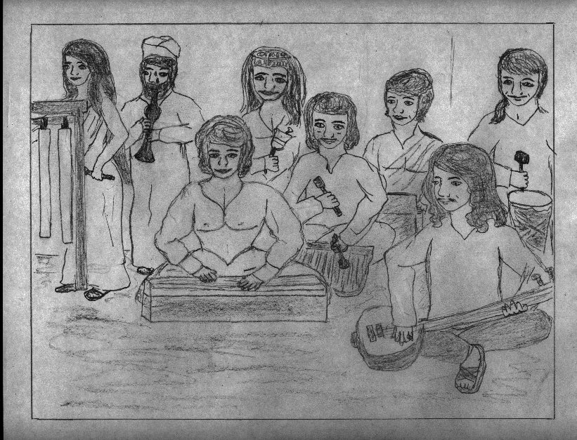 George Harrison and Mary, Queen Of Scots with members of The East Indian Band they are staying with because George is frustrated no one is listening to them in the material world