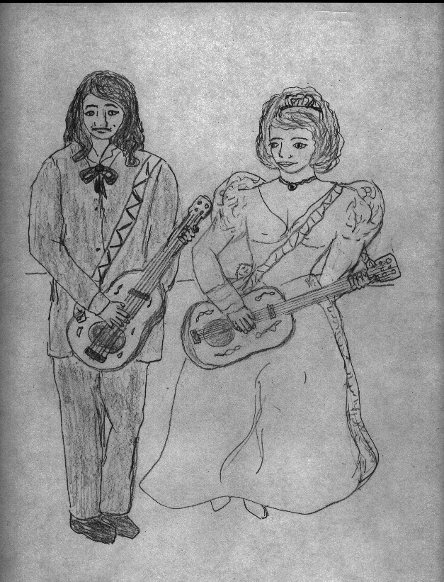 George Harrison & Mary, Queen Of Scots in their outfits for John Lennon's wedding doing "The Beauty Of Spain" for the assembled press.