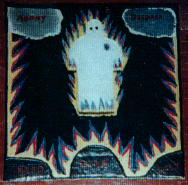 19 " x 19" x 1/2 " acryllic paint, papier mache canvas.