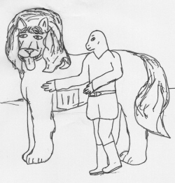 43 The head spun around with a sudden roar, and Nameless Fox jumped back. "Easy, Big Fellow, easy!"