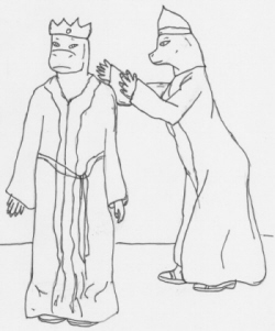 40 The King rose and seized his staff, and The High Priest stepped back. "I have made my judgement.," he roared, "do you question my authority?"
