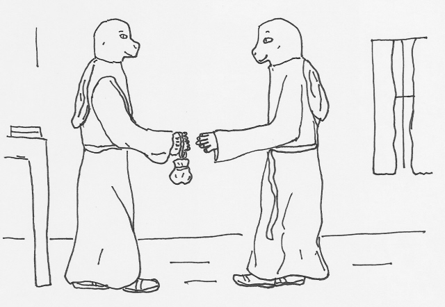 coins and came to me with the scroll and coins. 'Half the