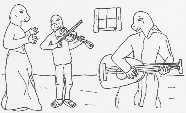 30 "I love making music," the young man answered, "I love people's faces when I play."