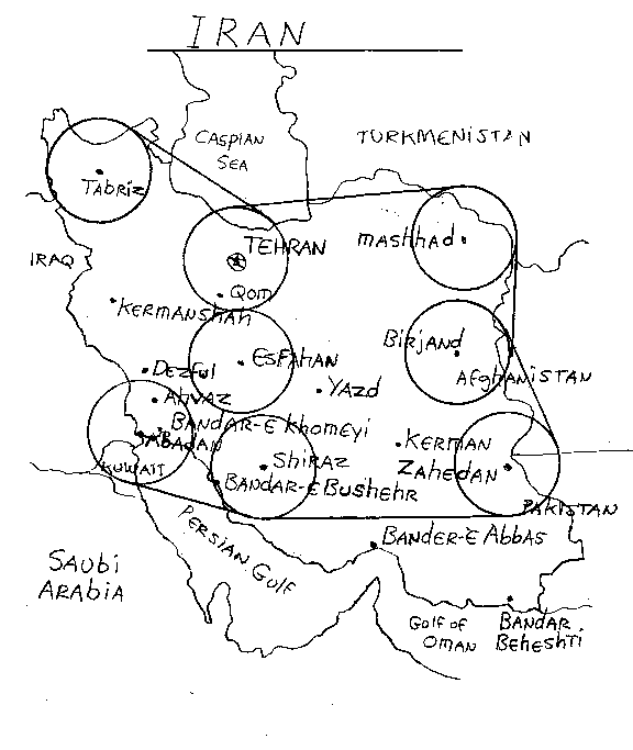 The Spiritual Dead Zones centered in Abadan, Tabriz, Birjad,